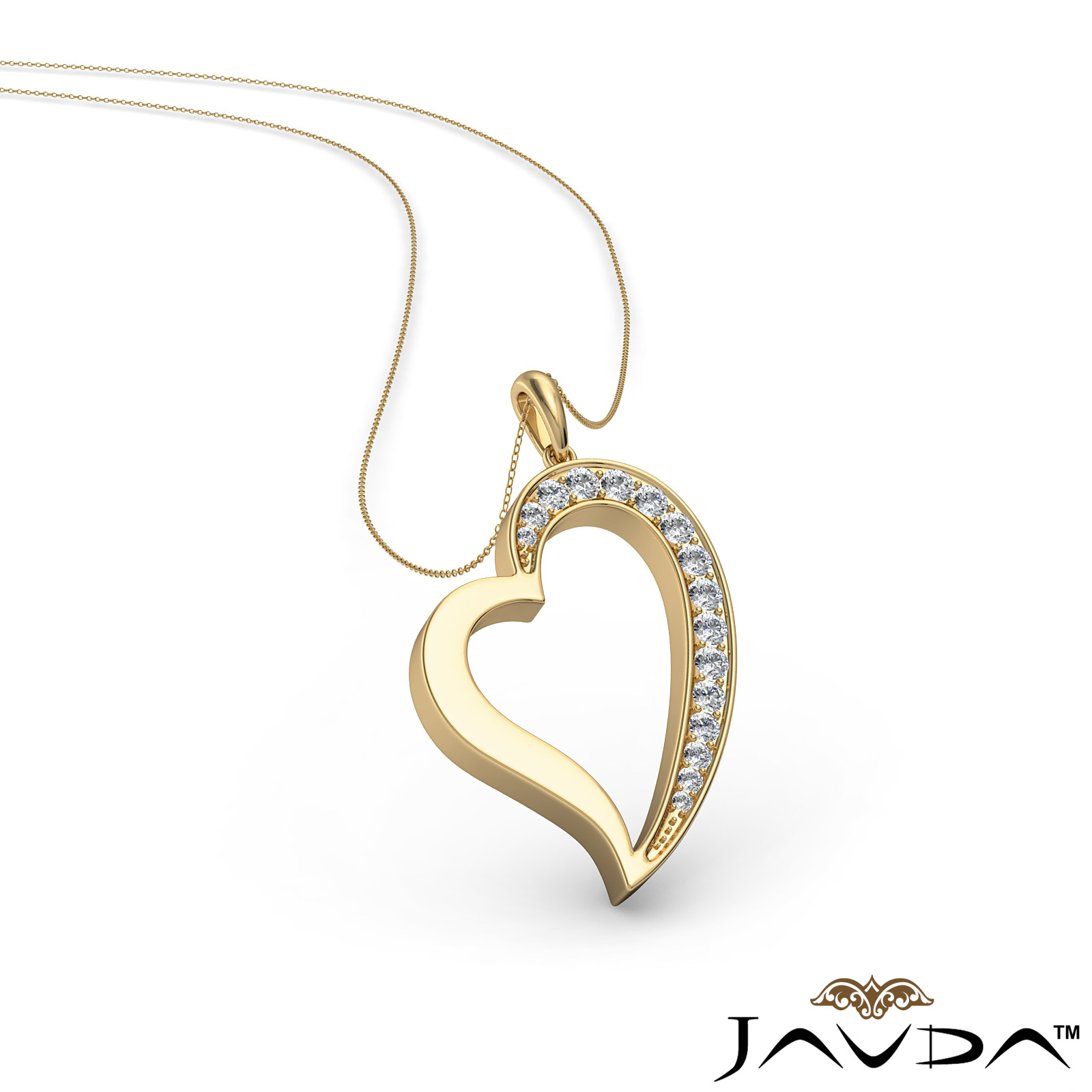 Side 0.15 ctw. Round Diamond Round Pave E - F color Diamond Heart Pendant 18k Gold Yellow with Silver Chain 18" necklace Pendant Hoop is 14k Gold and the Chain is Silver 18" . Gold Chain available at additional cost (0.15Ct. tw.)