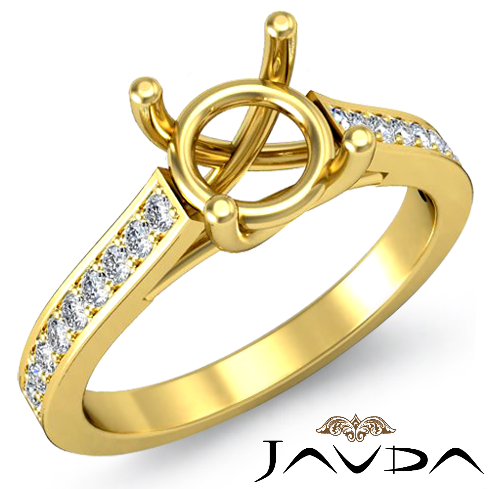 Beautiful in its own way, this diamond engagement ring is made in 14k Gold Yellow & showcases round semi mount center with pave set round diamonds dazzling along the shank. (0.3Ct. tw.)