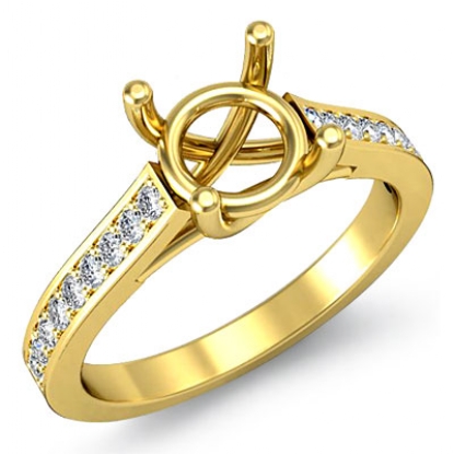 Beautiful in its own way, this diamond engagement ring is made in 18k Gold Yellow & showcases round semi mount center with pave set round diamonds dazzling along the shank. (0.3Ct. tw.)