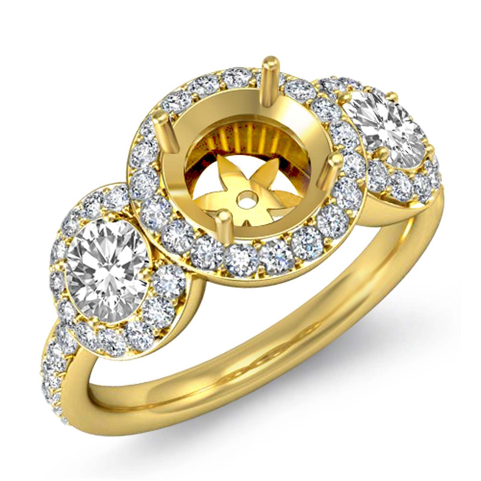 Round Diamond Engagement Ring 3 Stone Pave Semi Mount 14k Gold Setting (0.85Ct. tw.)