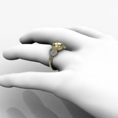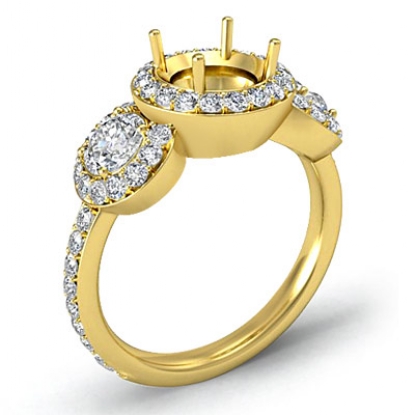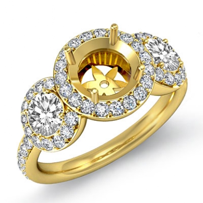 Round Diamond Engagement Ring 3 Stone Pave Semi Mount 18k Gold Setting (0.85Ct. tw.)