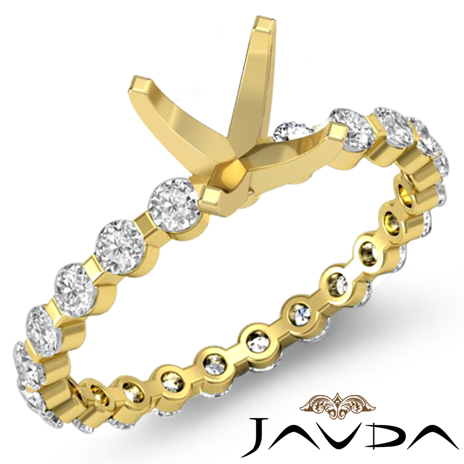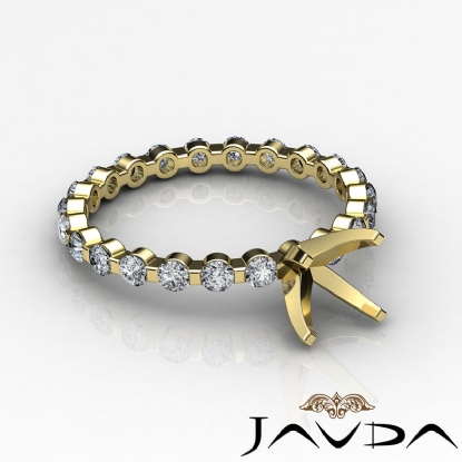 Elegant in its simplicity, this classic yet striking semi mount ring is made in 18k Gold Yellow. This diamond engagement ring features bar set round diamonds dazzling along the shank. (0.4Ct. tw.)