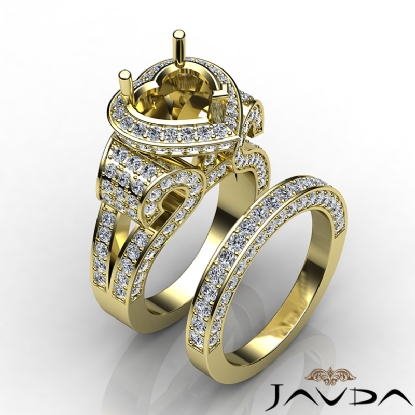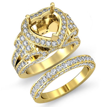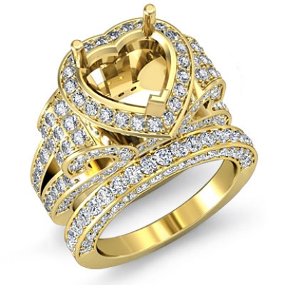 Ideal for any center diamond, this Women's diamond engagement ring and matching band, showcases a heart semi-mount halo and a royal shank of round pave-set diamonds. This bridal set is made in enduring 14k Gold Yellow. (3.9Ct. tw.)