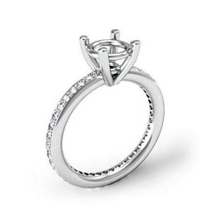 Pave Setting Diamond Engagement Ring Round Semi Mount 18k W Gold (0.5Ct. tw.)