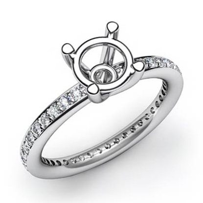 The gorgeous semi mount diamond engagement wedding ring features a center semi mount round diamond in prong setting and pave set diamonds along the shank. This set is made in 18k Gold White. (0.5Ct. tw.)