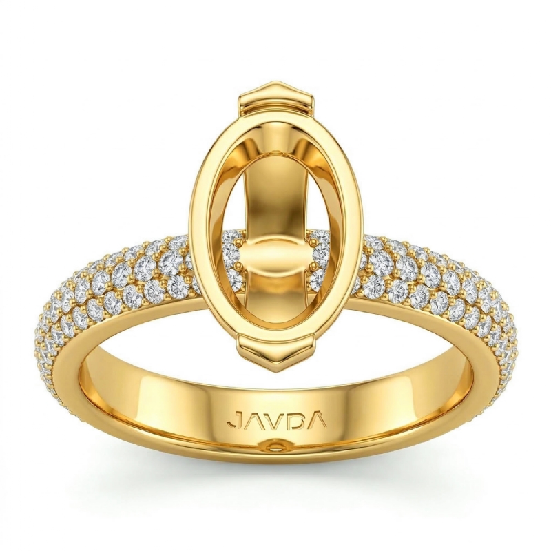 Oval Pave Diamond Engagement Women Ring Setting 18k Gold (1.4Ct. tw.)