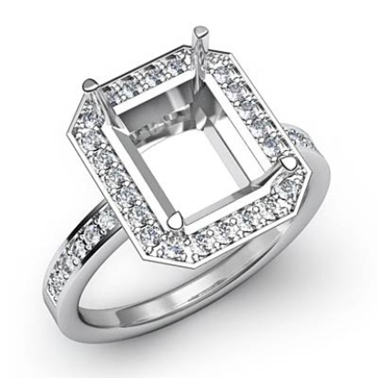 Diamond Engagement Ring Emerald Semi Mount Platinum Halo Setting (0.5Ct. tw.)