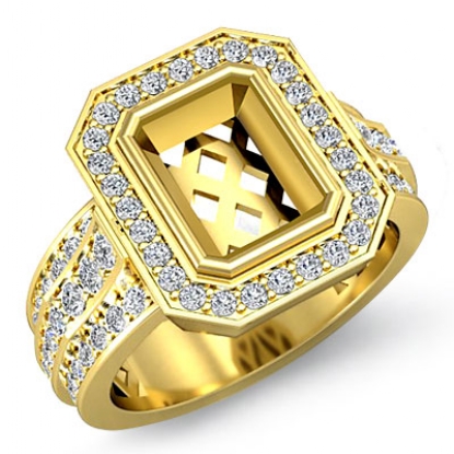 Diamond Engagement Ring 18k Gold Emerald Semi Mount Halo Setting (1.62Ct. tw.)