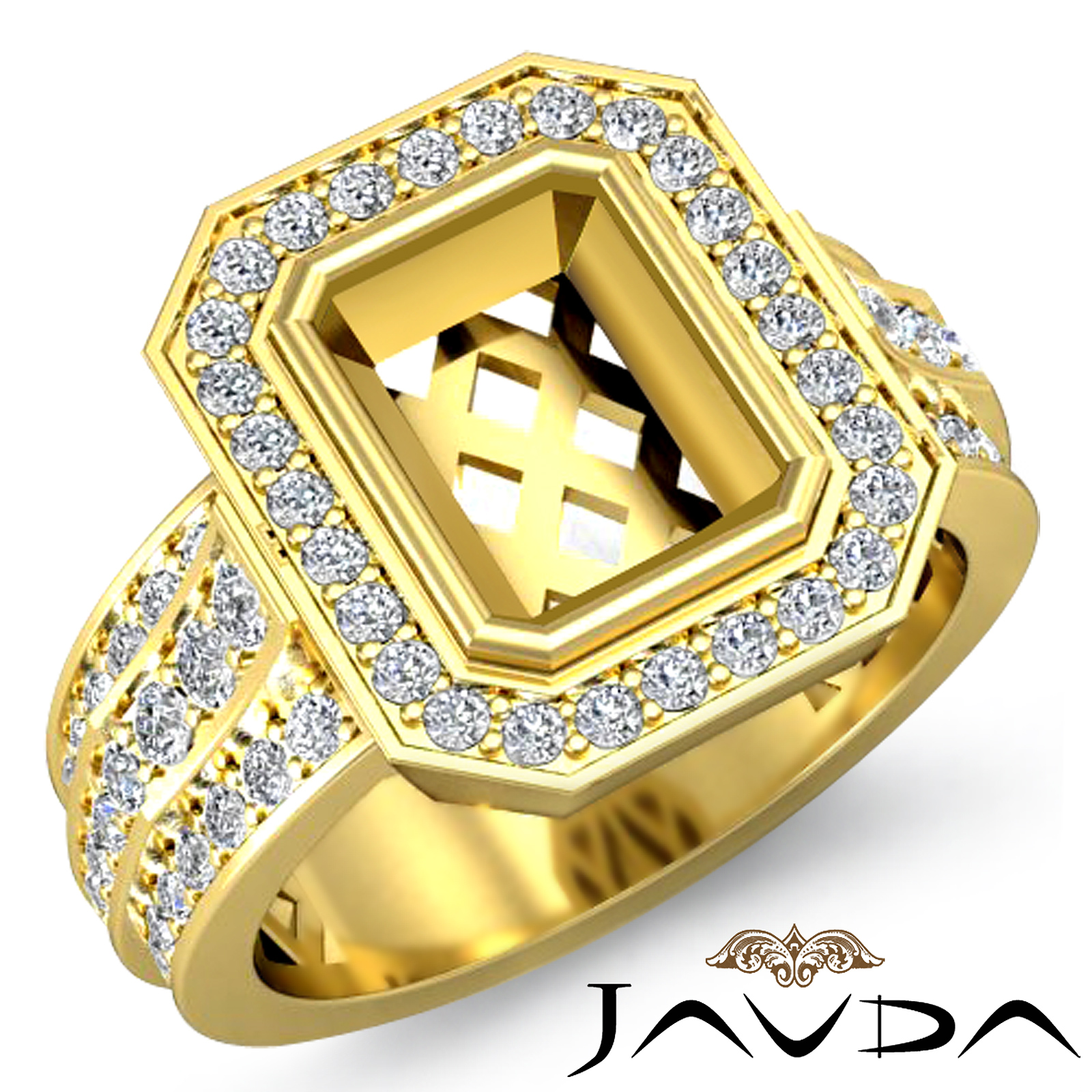Diamond Engagement Ring 18k Gold Emerald Semi Mount Halo Setting (1.62Ct. tw.)