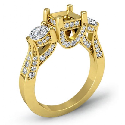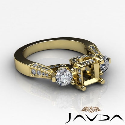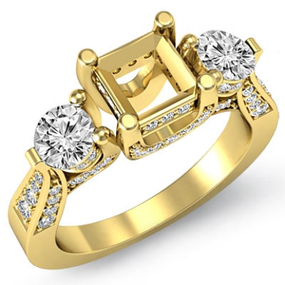 Round Diamond Three 3 Stone Engagement Ring Asscher Semi Mount 18k Gold (1.2Ct. tw.)