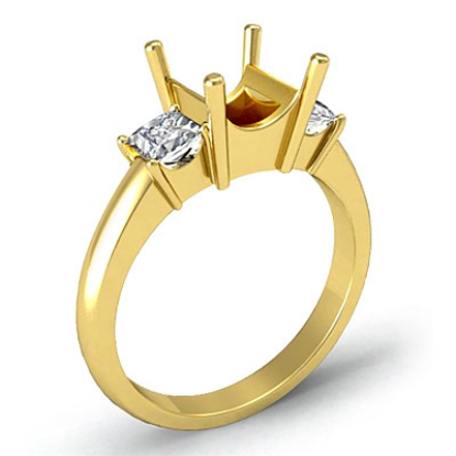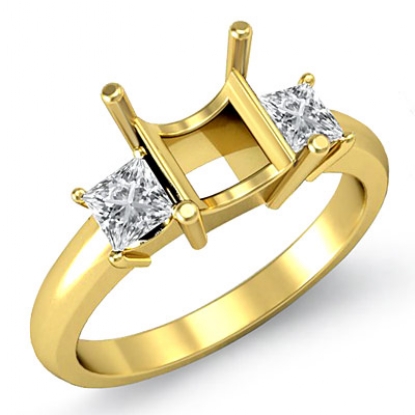 Three Stone Diamond Semi Mount Engagement Ring Princess Setting 14k Gold (0.51Ct. tw.)