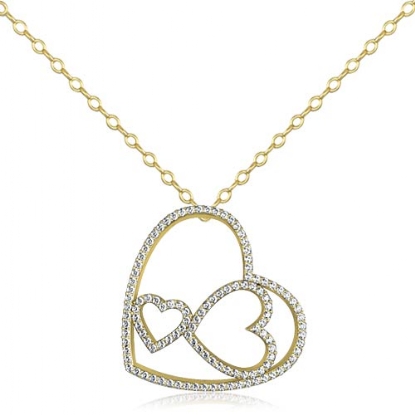 8.24 gram Round Diamond Heart Pendant polished 14k Gold Yellow Gold, One big heart shape contains two small heart shapes within it designed beutifuly with round diamond sets in pave setting. (1.04Ct. tw.)