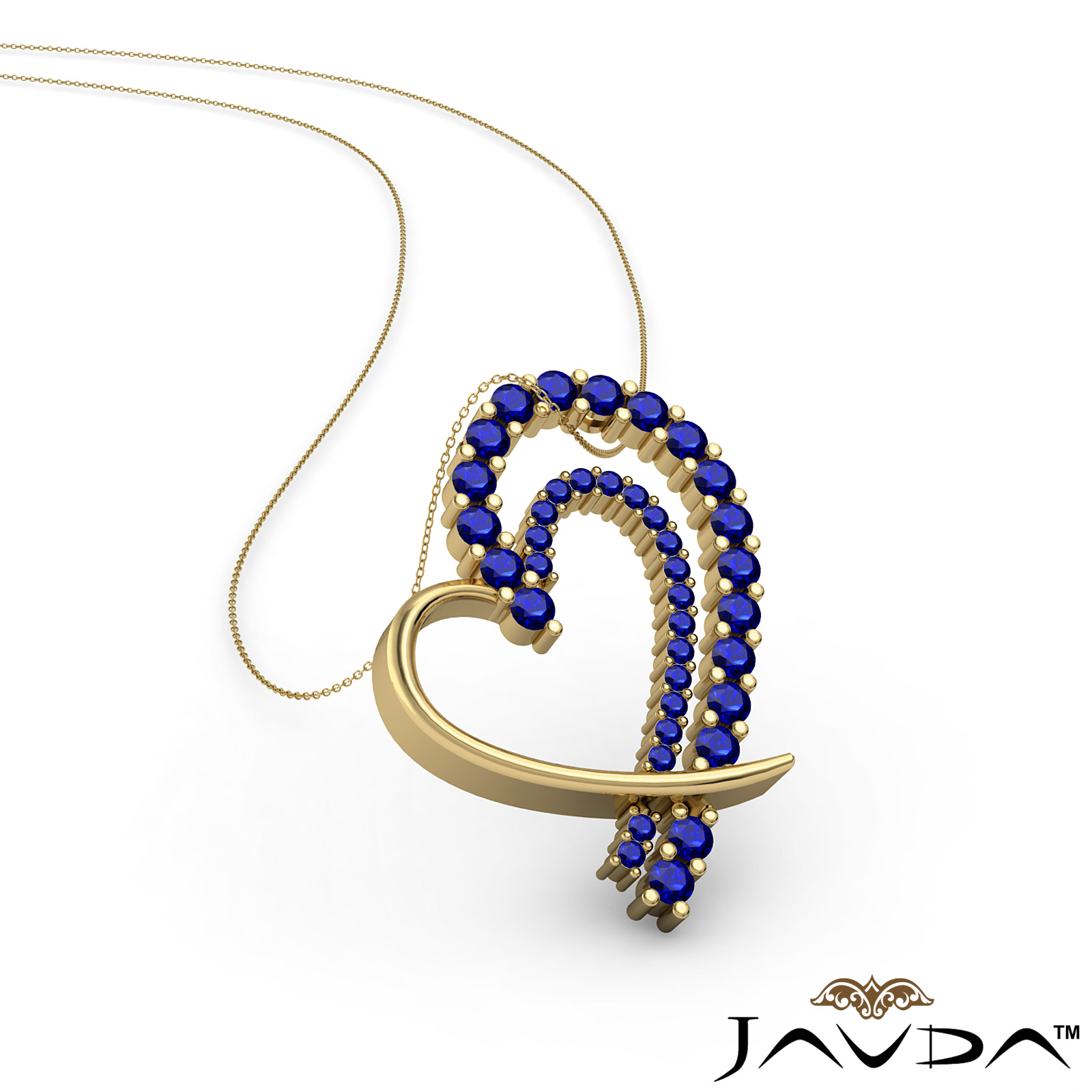 4.72 gram Round Diamond Fancy Heart Pendant 14k Gold Yellow Gold, Hollow heart shape designed with round-cut blue sapphire & diamond sets perfectly in prong setting. (0.68Ct. tw.)