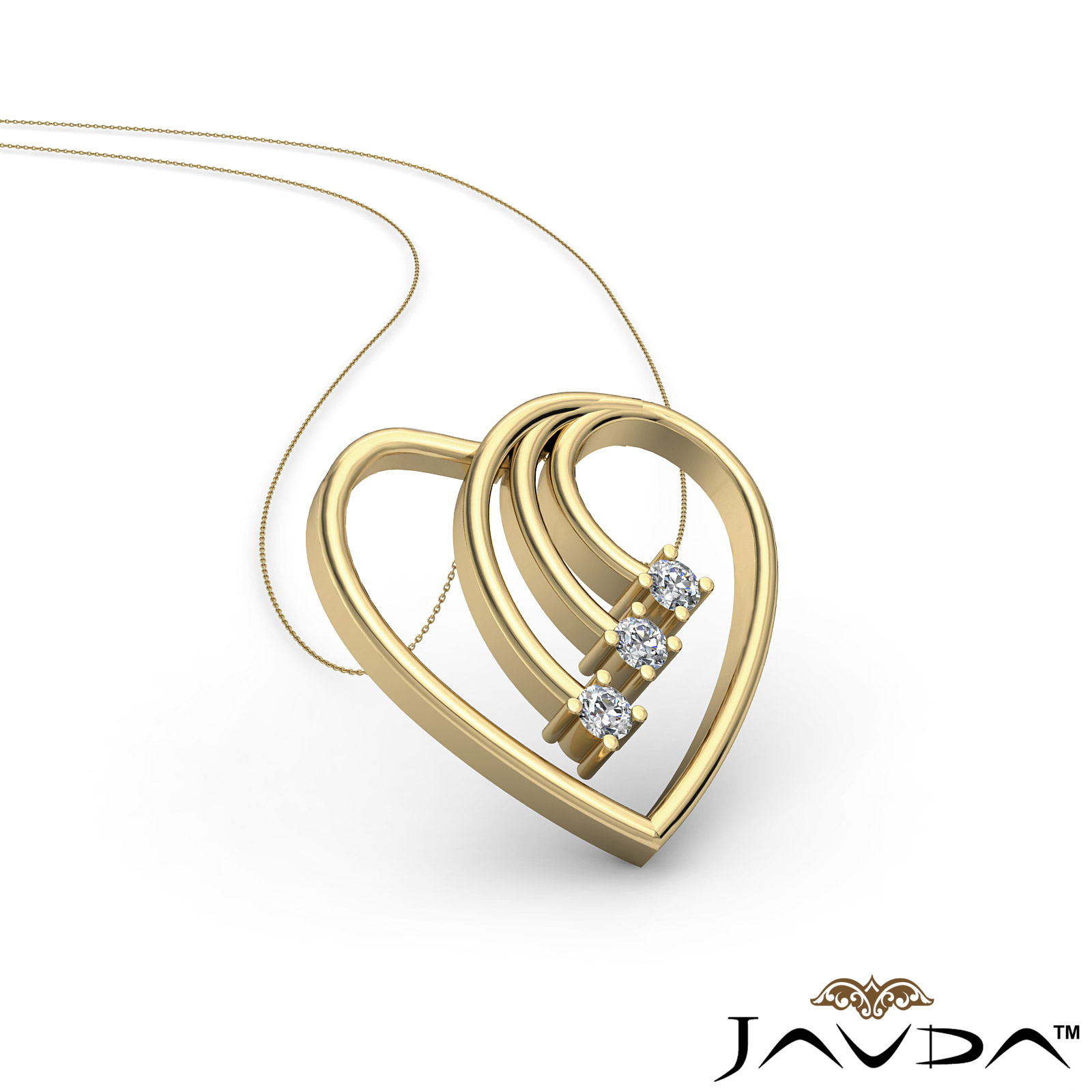 8.22 gram Round Diamond Fancy Heart Pendant 18k Gold Yellow Gold, Hollow heart shape designed with three round diamond sets perfectly in prong setting inside it. (0.3Ct. tw.)
