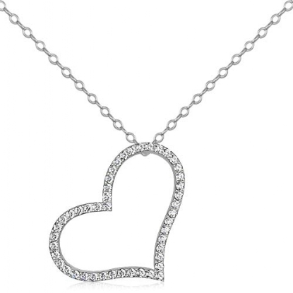 Round Diamond Heart Pendant 18k W Gold (0.69Ct. tw.)