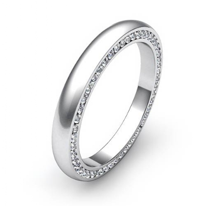 Modern yet classic this dome round diamond side eternity men's wedding band is made from 18k Gold White. Featuring polished finish dome with both side total round diamonds in a channel setting.