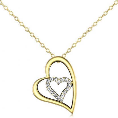 4.92 gram Round Diamond Heart Pendant 18k Gold Yellow Gold, A big polish finished heart shape contain small hollow heart shape designed with round diamond sets in pave setting. (0.25Ct. tw.)
