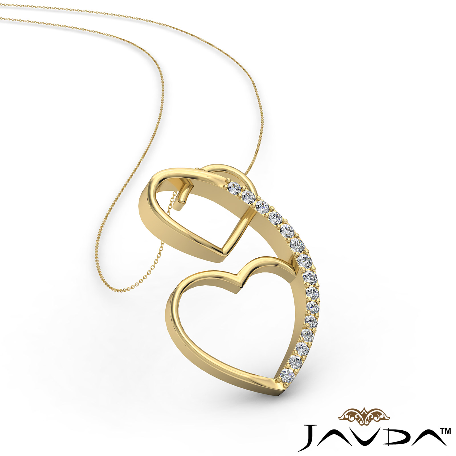 3.78 gram Round Diamond Heart Pendant 14k Gold Yellow Gold, Two hearts connecting symbol pendant designed with round diamond sets perfectly in pave setting. (0.21Ct. tw.)