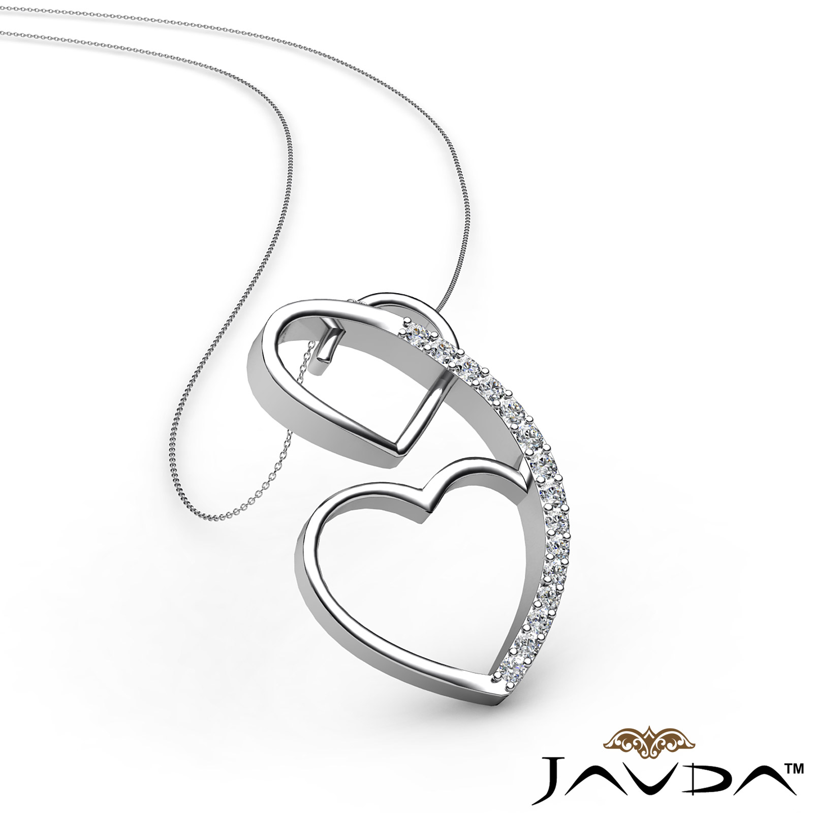 4.37 gram Round Diamond Heart Pendant 18k Gold White Gold, Two hearts connecting symbol pendant designed with round diamond sets perfectly in pave setting. (0.21Ct. tw.)