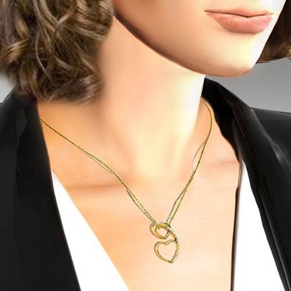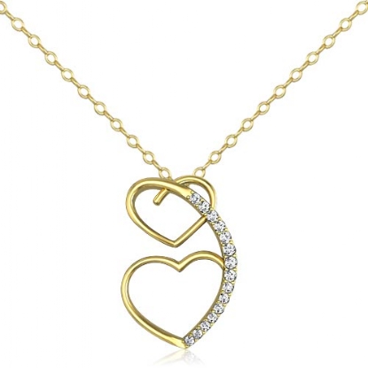 4.37 gram Round Diamond Heart Pendant 18k Gold Yellow Gold, Two hearts connecting symbol pendant designed with round diamond sets perfectly in pave setting. (0.21Ct. tw.)