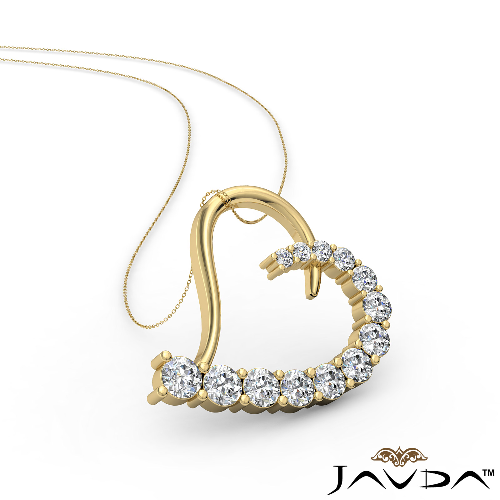6.25 gram Round Diamond Heart Pendant 14k Gold Yellow Gold, Stylish hollow heart shape, polish finished on one side and round diamond sets in prong setting decorated on other side. (2.02Ct. tw.)