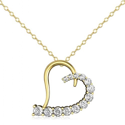7.23 gram Round Diamond Heart Pendant 18k Gold Yellow Gold, Stylish hollow heart shape, polish finished on one side and round diamond sets in prong setting decorated on other side. (2.02Ct. tw.)