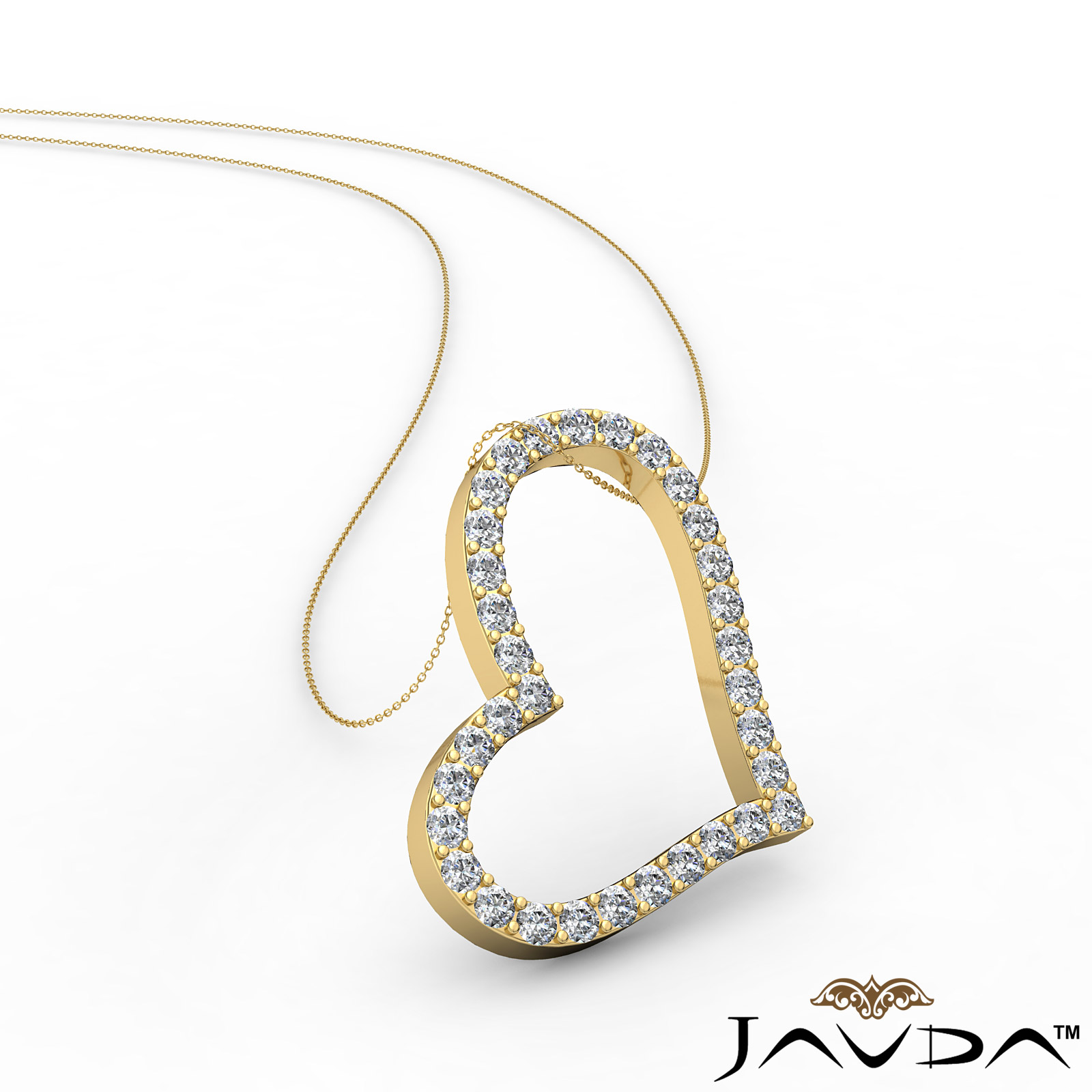 3.62 gram Round Diamond Hollow Heart Pendant 14k Gold Yellow Gold, Hollow heart shape designed with round diamond sets perfectly in pave setting all over the shape. (0.99Ct. tw.)