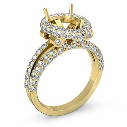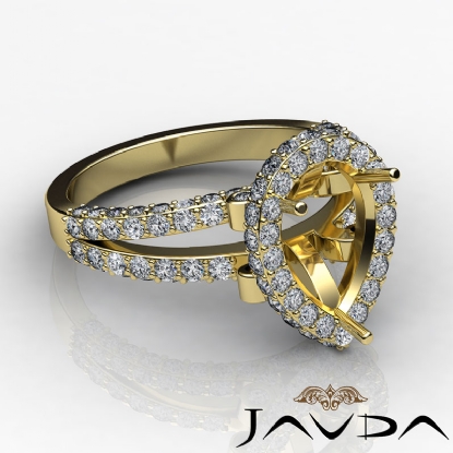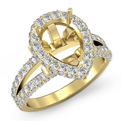 Undeniably striking, this pear semi mount diamond engagement ring is made in 18k Gold Yellow. It displays pave set round diamonds in halo & split shank. (1.52Ct. tw.)