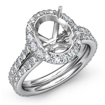 Diamond Engagement Ring Oval Shape Semi Mount 18k W Gold Halo Setting (1.26Ct. tw.)