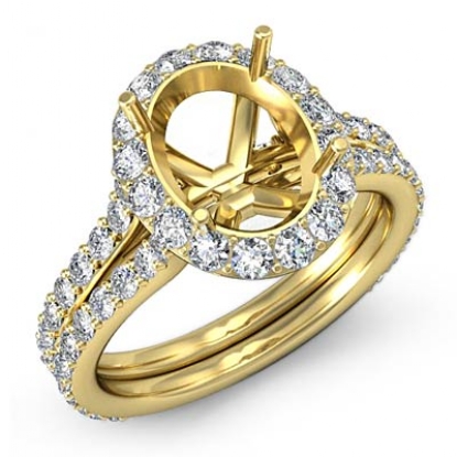 Diamond Engagement Ring Oval Shape Semi Mount 18k Gold Halo Setting (1.26Ct. tw.)