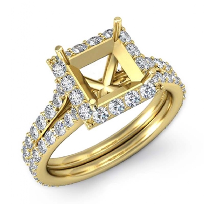 Halo Setting Diamond Engagement Princess Semi Mount Ring 14k Gold (1.38Ct. tw.)