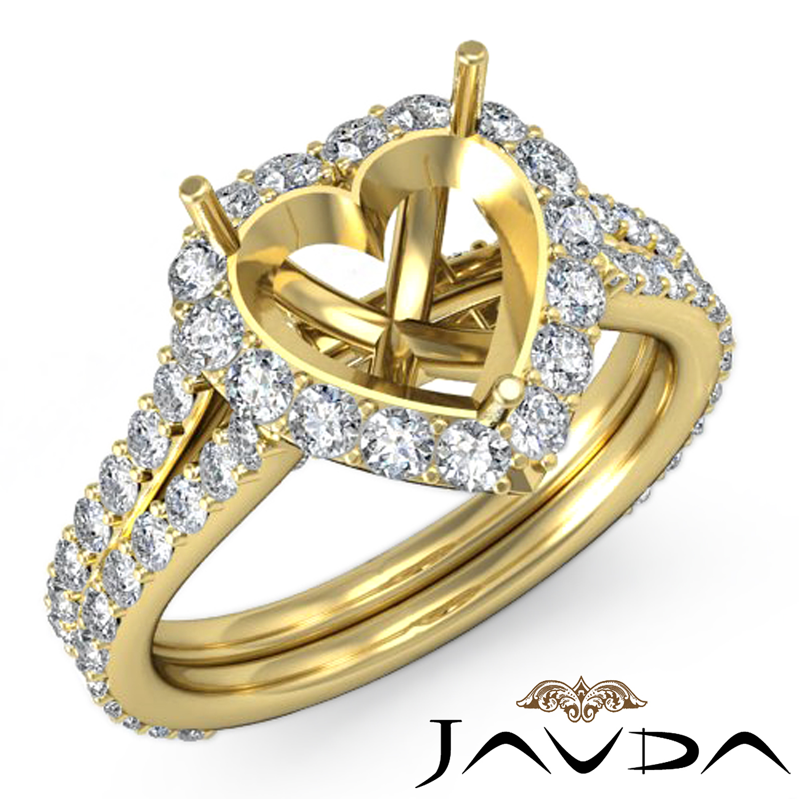 Diamond Engagement Ring Halo Setting 14k Gold Heart Cut Semi Mount (1.29Ct. tw.)