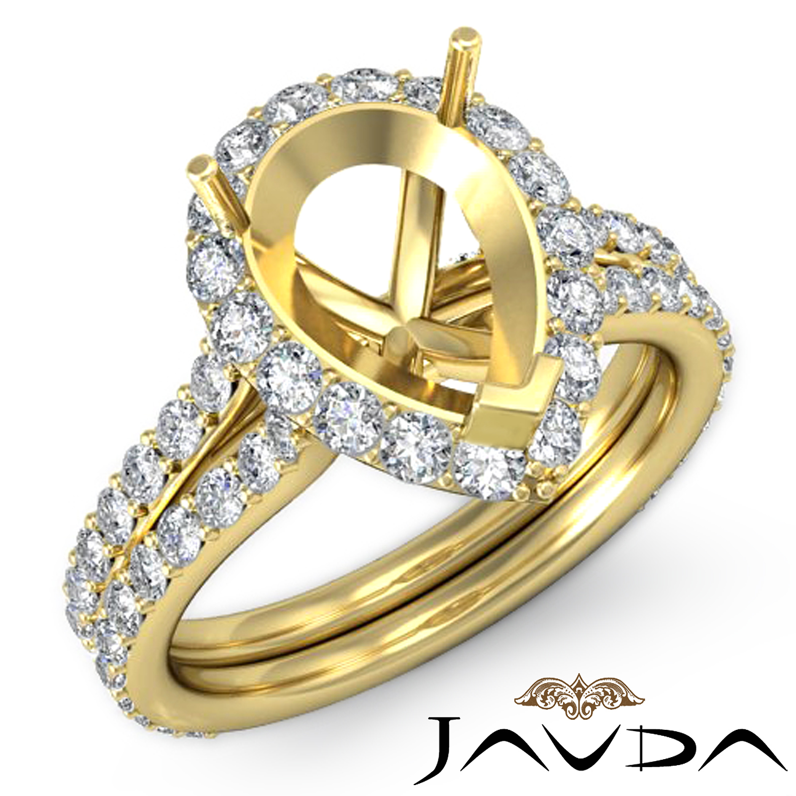 Get ready for glamour, with this striking diamond engagement ring made in 18k Gold Yellow. The pear semi mount ring features pave set round diamonds in halo & along the shank. (1.3Ct. tw.)