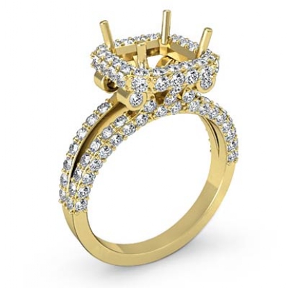 Diamond Engagement Halo Setting Ring Asscher Semi Mount 18k Gold (1.53Ct. tw.)