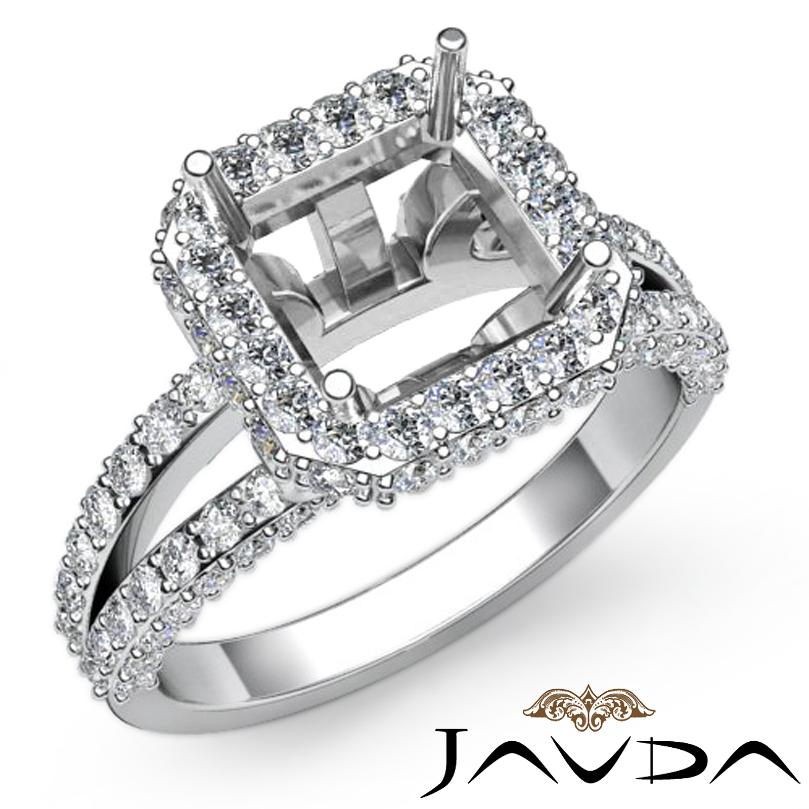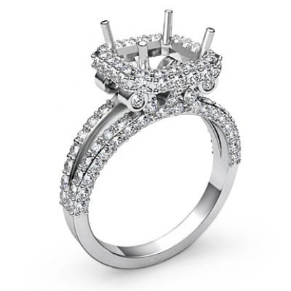 Diamond Engagement Halo Setting Ring Asscher Semi Mount Platinum (1.53Ct. tw.)