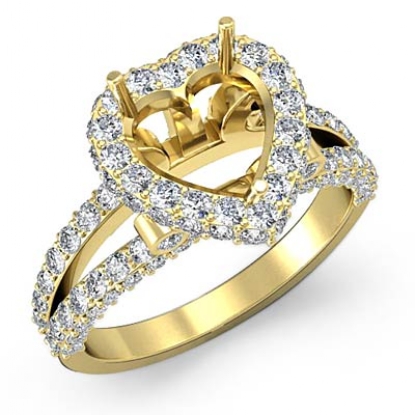 Diamond Engagement Heart Cut Ring 14k Gold Halo Setting Semi Mount (1.55Ct. tw.)