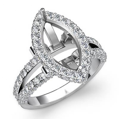 Halo Setting Diamond Engagement Marquise Semi Mount Ring 18k W Gold (1.58Ct. tw.)