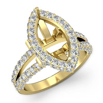 Halo Setting Diamond Engagement Marquise Semi Mount Ring 18k Gold (1.58Ct. tw.)