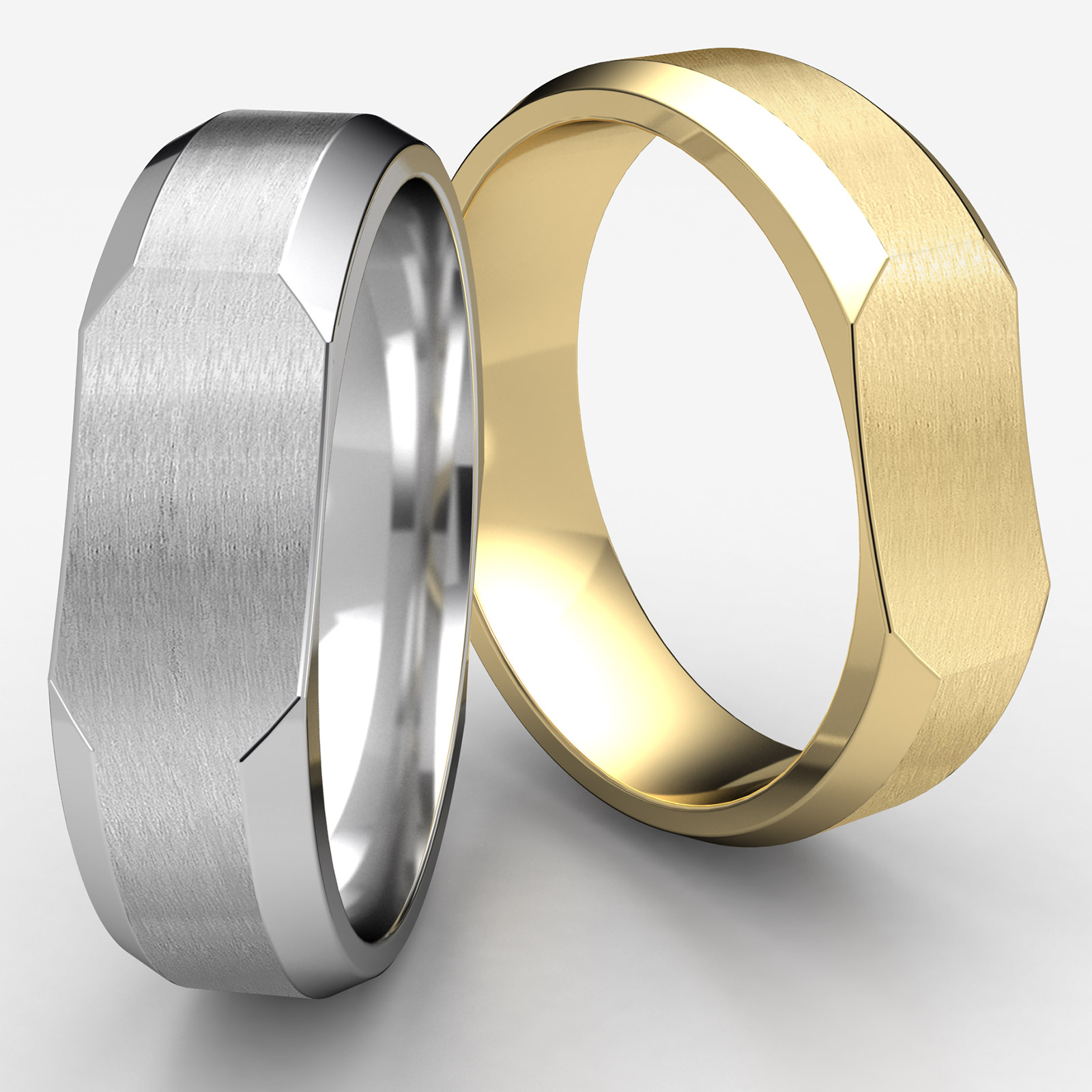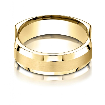 Satin Finish Beveled Edge Unisex 14k Gold Bone Wedding Band