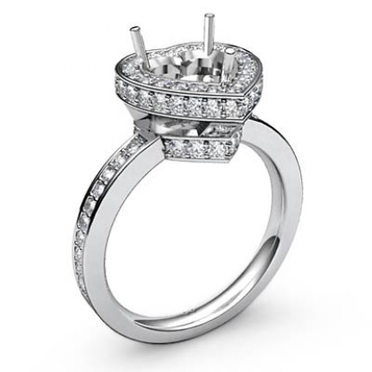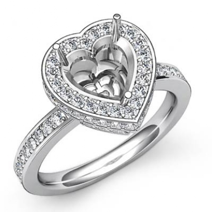 Diamond Engagement Ring 18k W Gold Heart Cut Semi Mount Halo Setting (0.89Ct. tw.)