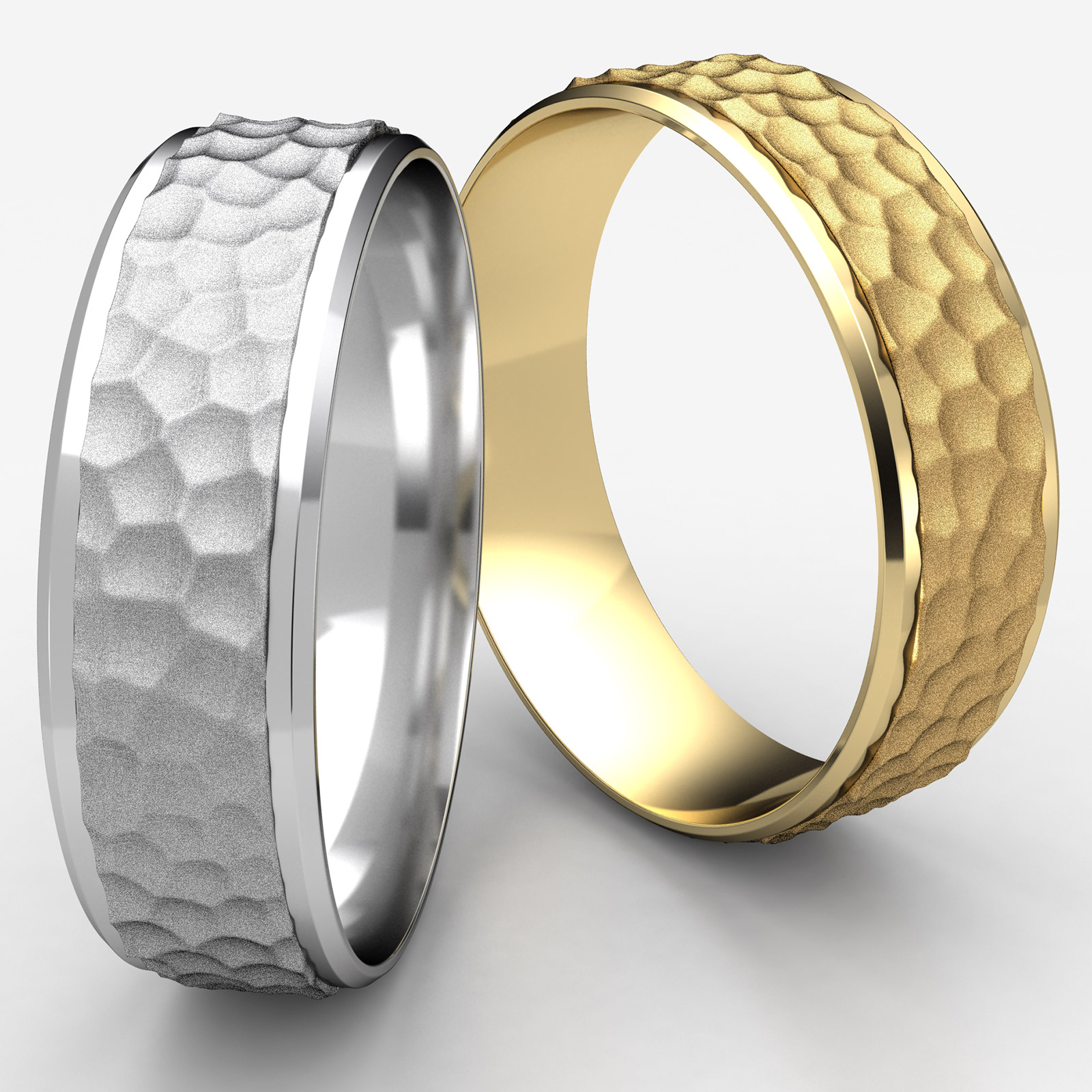 Hammered Finish Beveled Edge Unisex Wedding Band 14k Gold