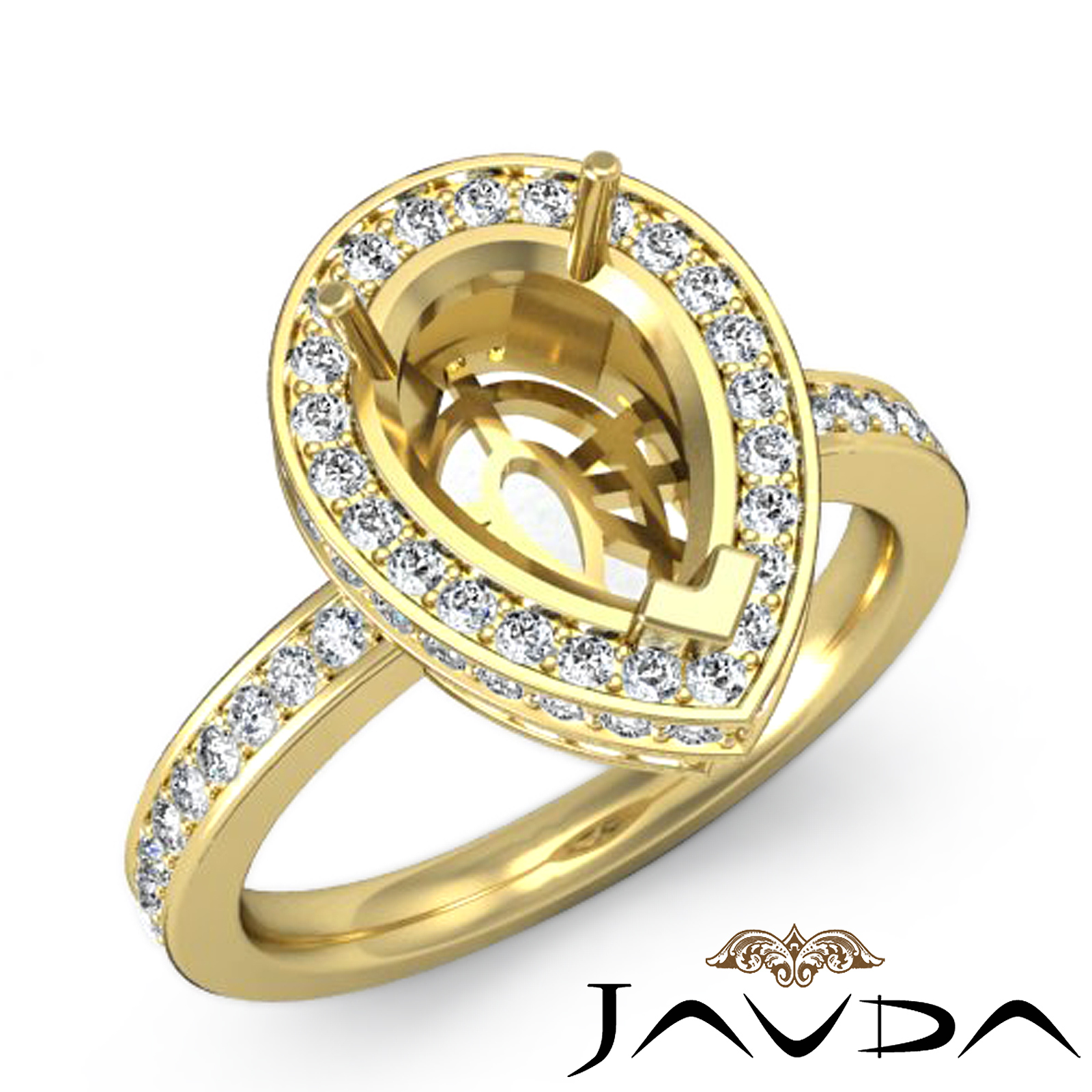 Diamond Engagement Ring Pear Shape Semi Mount 14k Gold Halo Setting (1.05Ct. tw.)