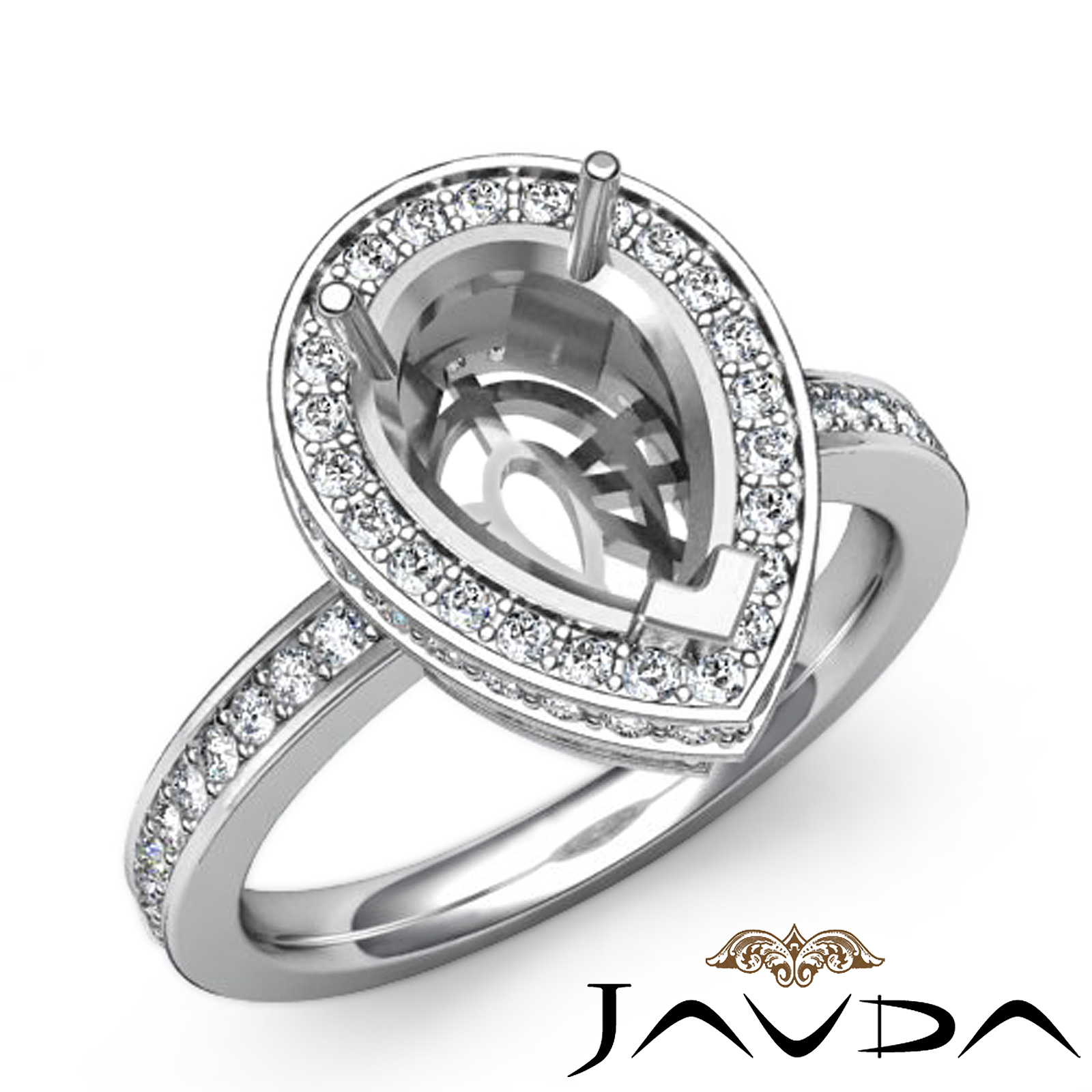Diamond Engagement Ring Pear Shape Semi Mount Platinum Halo Setting (1.05Ct. tw.)