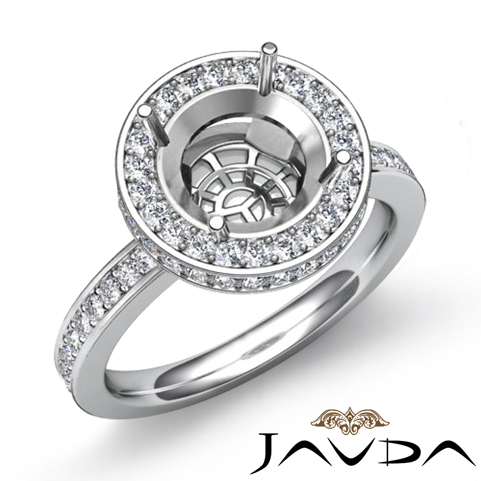 Diamond Engagement Semi Mount Ring Round Halo Pave Setting Platinum (0.8Ct. tw.)