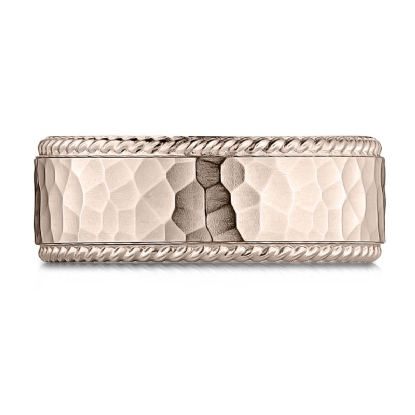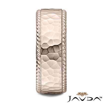 Hammered Finish Center Rope Edge Wedding Band 14k Rose Gold Men