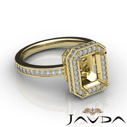 Lavishly showcasing your center semi mount with brilliance, this diamond engagement ring is made in 14k Gold Yellow. This emerald semi mount displays round diamonds in halo & along the shank. (0.89Ct. tw.)