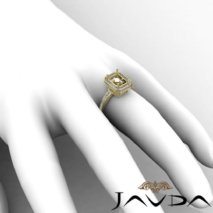 Halo Pave Setting Diamond Engagement Ring Emerald Semi Mount 14k Gold (0.89Ct. tw.)