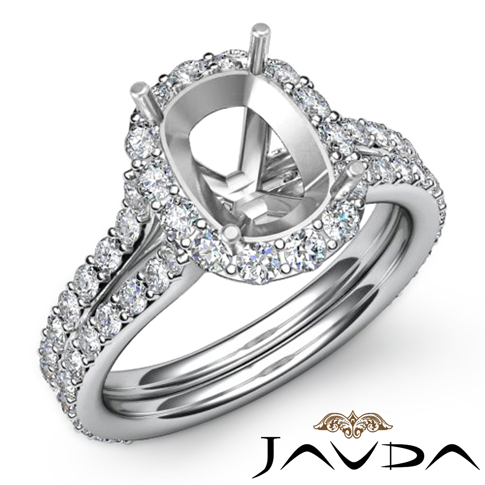Diamond Engagement Cushion Semi Mount Ring Halo Setting 14k W Gold (1.32Ct. tw.)