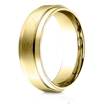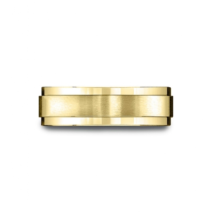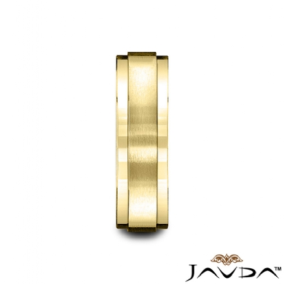 This unisex comfort fit carved wedding band features a satin finished along the center with high polished edges. This stunning weddding ring for men's and women's represent the lasting bond of marriage. Made from 14k Gold Yellow, measures 7mm wide. Available in white gold, yellow gold and rose gold.