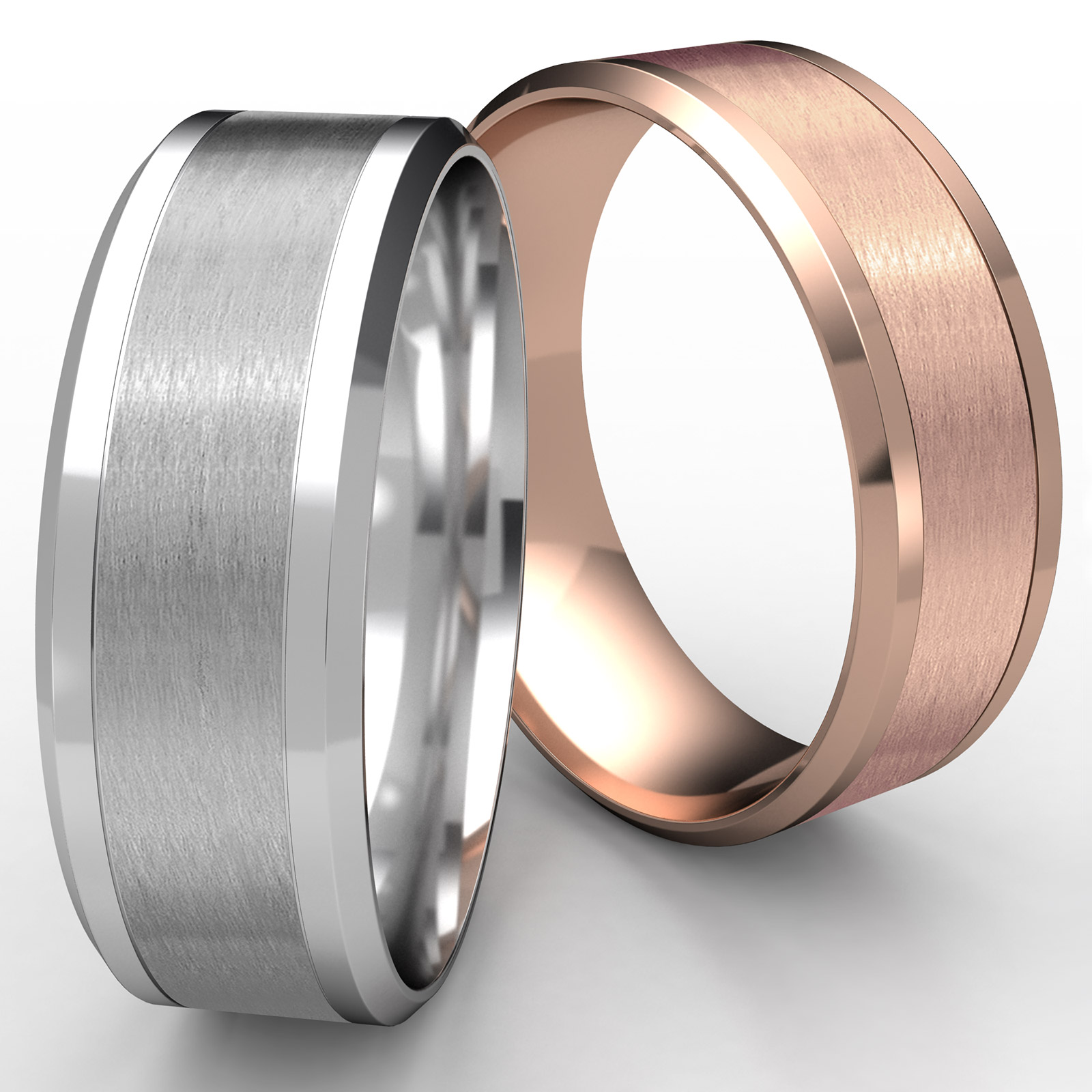 Satin Center Drop Beveled Edge Unisex Wedding Band 14k Rose Gold